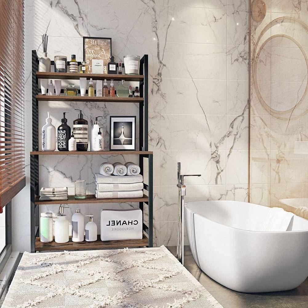 This Industrial Modern Kitchen Bakers Rack Brown Woodgrain Sturdy Metal Frame has high on utility, not only a kitchen island, also as an elegant bookcase, microwave stand, spice rack organizer, bathroom cabinet, wine board for living room, and can harmonize with any other rustic furniture in any room. The vertical structures doesnít take up space and add more storage space for bedroom, kitchen, pantry or bathroom. Come with a total of 3 bottom shelves and 2 top shelves, this microwave rack is an excellent storage option for the eat-in kitchen. It is ideal for holding a microwave, oven, and some of your other kitchenware or bits and pieces, as well as storing spice, plate dishes, and any other things you want. Your kitchen will become tidy! This kitchen stand features a 31.5îL x 15.7îD tabletop to provide a sturdy working surface, which is durable and easy to clean. Two slatted upper shelves are ideal for displaying your favorite cookbooks, jars of spices, and canisters of dry goods. A strong iron frame and quality 0.59î thick chipboard enhance the strength, so you can put all you need on this baker rack. 6 reinforced iron rods of each tier prevent items from slipping and increase the loading capacity. Floor levelers not only can be used in uneven ground to prevent scratches, but also make adjustment of height to meet your various demands.