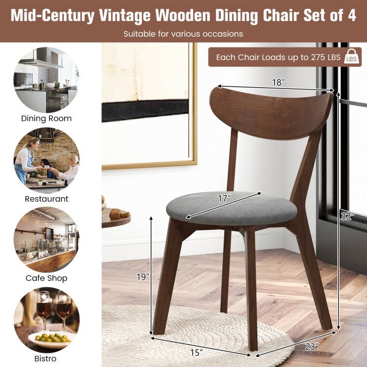 Filled with high density and elastic sponge, this Set of 2 Mid-Century Modern Curved Back Wood Dining Chair Grey Upholstered Seat will provide comfortable sitting experience and avoid tired feeling when sitting for long time. Covered with soft upholstery, the chairs feature smooth tactility and superior air permeability, which will make a difference in the level of comfort. Designed with curved backs, the chairs allow you to lean against the back thereby reducing the back muscle stiffness and relaxing your body. Plus, the chairs adopt an optimal angle of inclination, making it possible to fit well with your body curve. 4 Splayed legs made of natural rubber wood cannot only disperse pressure evenly to enhance stability but also ensure superior durability and long term service time. The wood structure is sturdy enough to support you firmly while a solid connection will improve safety and reliability. The chair can be used as a vanity chair in front of your dresser, dining chair in your dining room and corner chair next to coffee table. Wherever the mid-century elegant chairs are placed, they will satisfy your requirement and match perfectly with the room dÈcor. The chairs are easy to assemble, taking less time and energy to figure out how to put them together. In the meanwhile, you can wipe dust off and remove stain easily to keep chair clean with a soft cloth. Besides, smooth corners will protect you from scratch.