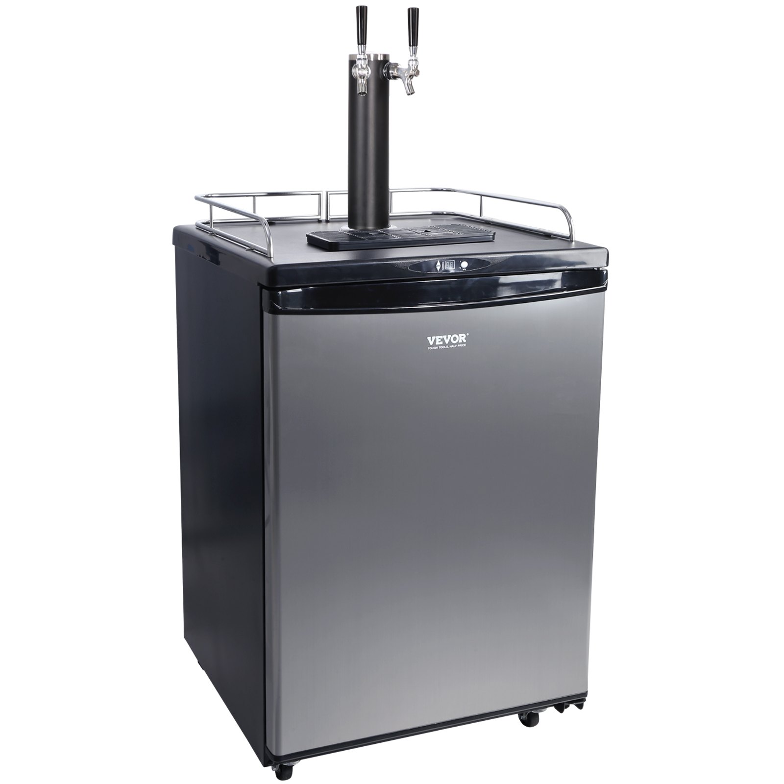 Home > Beer Kegerator, Dual Tap Draft Beer Dispenser, Full Size Keg Refrigerator With Shelves, CO2 Cylinder, Drip Tray & Rail, 32°F- 75.2°F Temperature